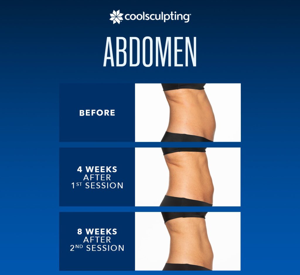 For an excellent example of a realistic result, imagine someone at their ideal weight who still has a little bit of a stomach fat layer protruding. Coolsculpting could make their abdomen flat after several sessions. If someone already has a flat stomach, several sessions of Coolsculpting could reveal their abdominal muscle definition.